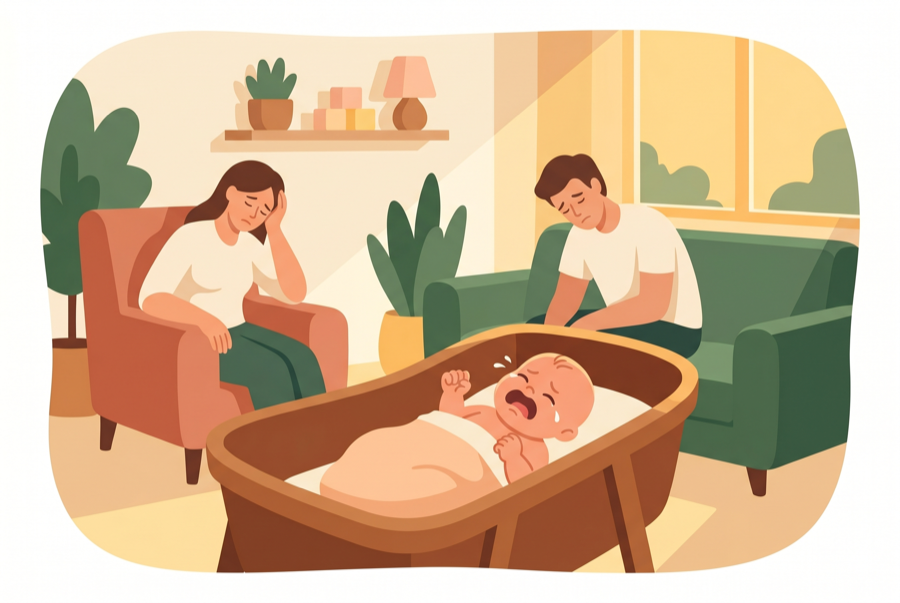 傍晚六点,你刚想喘口气准备晚饭,怀里的小人儿却毫无征兆地开始哭闹。喂奶,他扭开头;抱着走,他打挺;怎么哄都停不下来,小脸憋得通红,哭声一声高过一声。你抱着他在客厅里来回踱步,手臂发酸,心里又急又累:“宝宝到底怎么了?是不是哪里不舒服?还是我哪里没做好?” 这种每天傍晚定时上演的“崩溃时刻”,让无数新手爸妈心力交瘁。